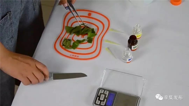 检查测量流程也无比简易:只需称取2.0g原材料(约1cm见方)放上原材料杯杯,干预显色剂,静置10分后便可查看到成果展。