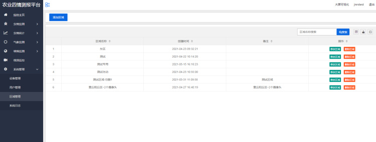 监控主页显现装备列表、大屏可视化、舆图展现等菜单信息。显现泥土墒情、虫情、景象形象监测图标及装备的运转状况。